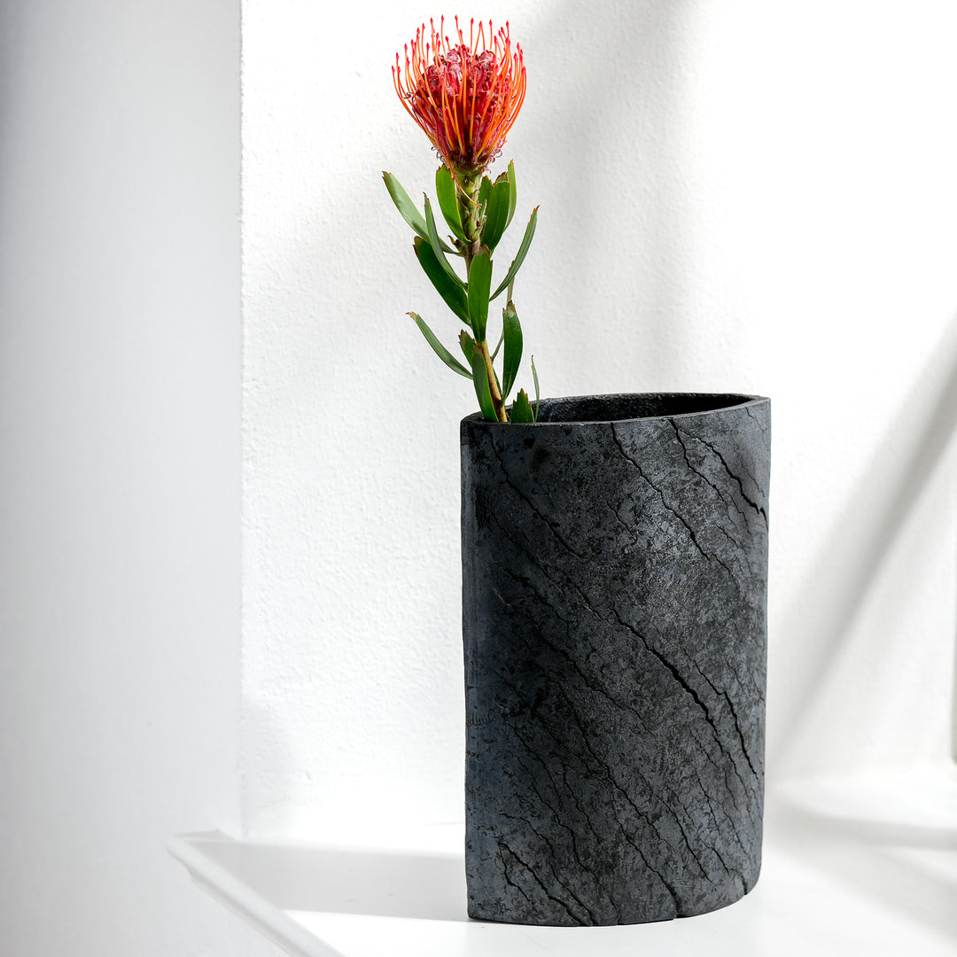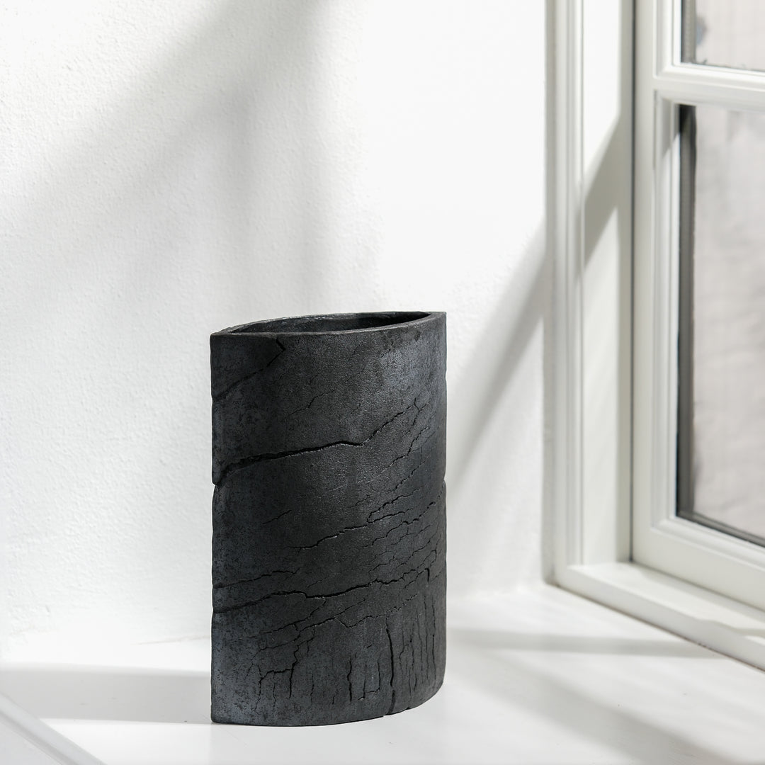 Gundula Sommerer, Raku Vase, oval | schwarz (GS192)