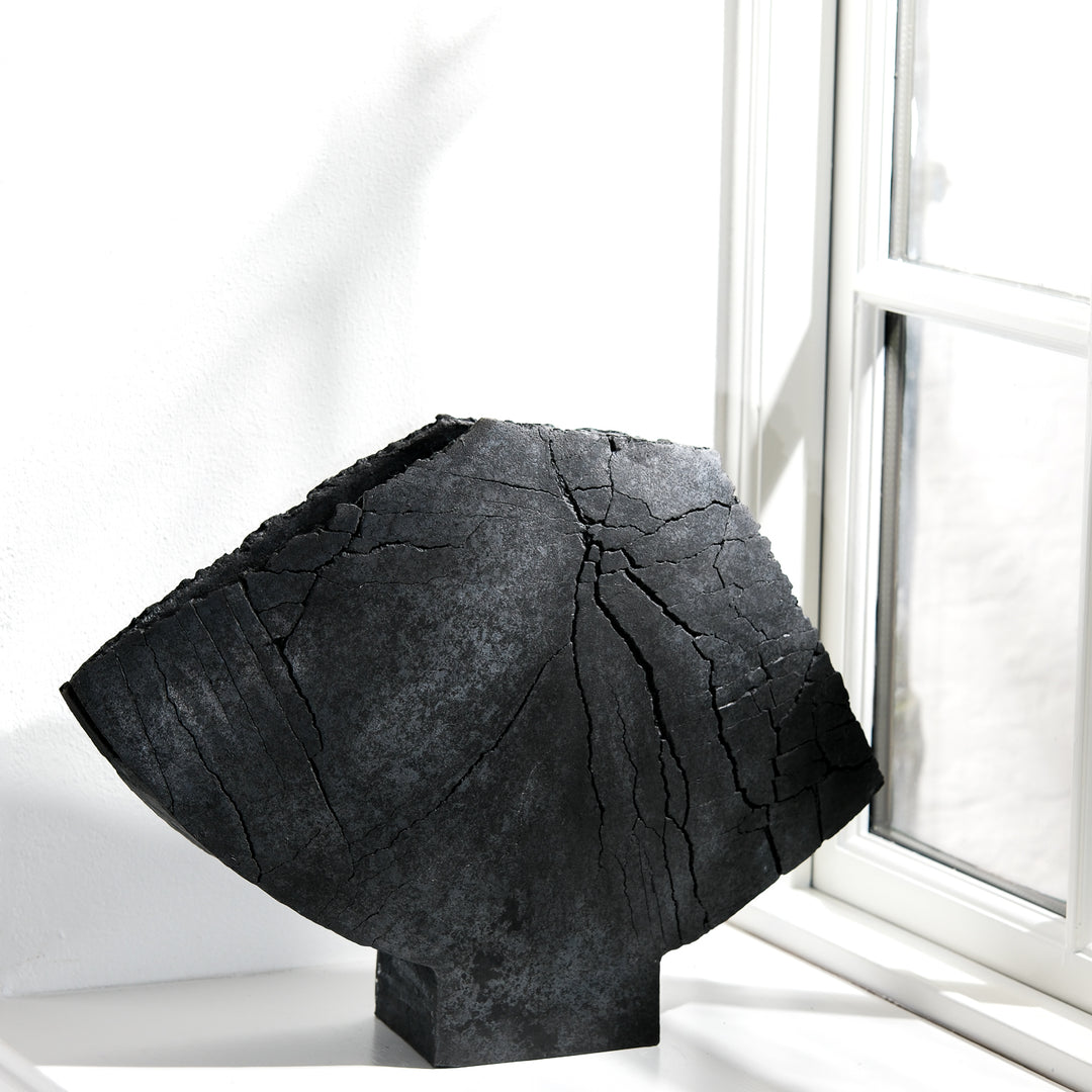 Gundula Sommerer, Flügelvase | Raku, schwarz (RF106)