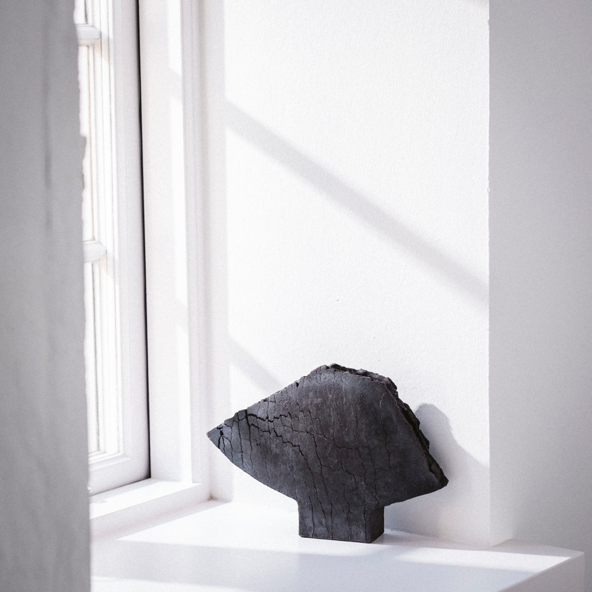 Über das Objekt: Gundula Sommerers asymmetrische pech-schwarzen Flügelvasen „stehen für sich“. Die in Aufbautechnik handgefertigten Objekte sind Unikate und bei Größen von bis zu 50cm Breite äußerst markant in ihrem Erscheinungsbild, bei sehr hohen Wiedererkennungswert. Durch den Einsatz des Raku-Verfahrens beim Brennen der Objekte entsteht Kohlenstoff, der in die Poren der Vase eindringt und die Stücke dauerhaft tiefschwarz färbt. Dieses Schwarz in Kombination mit den Rissen in der Oberfläche der Vase, führt zu einer einzigartigen Individualisierung der Oberflächenstruktur. Sowohl optisch als auch haptisch. Diese Flügelvase ist ca. 21cm hoch, an der breitesten Stelle ca. 30 cm breit und bis zu 6,5cm stark. Die Öffnung der wasserdichten Vase ist schmal, so dass das Objekt sich wunderbar für langstielige zarte Sträuße, Feld- und Kornblumen, Gräser oder einzelne Zweige eignet. Gundula Sommerer fertigt diese Vase in unterschiedlichen Größen in Kleinstserie.