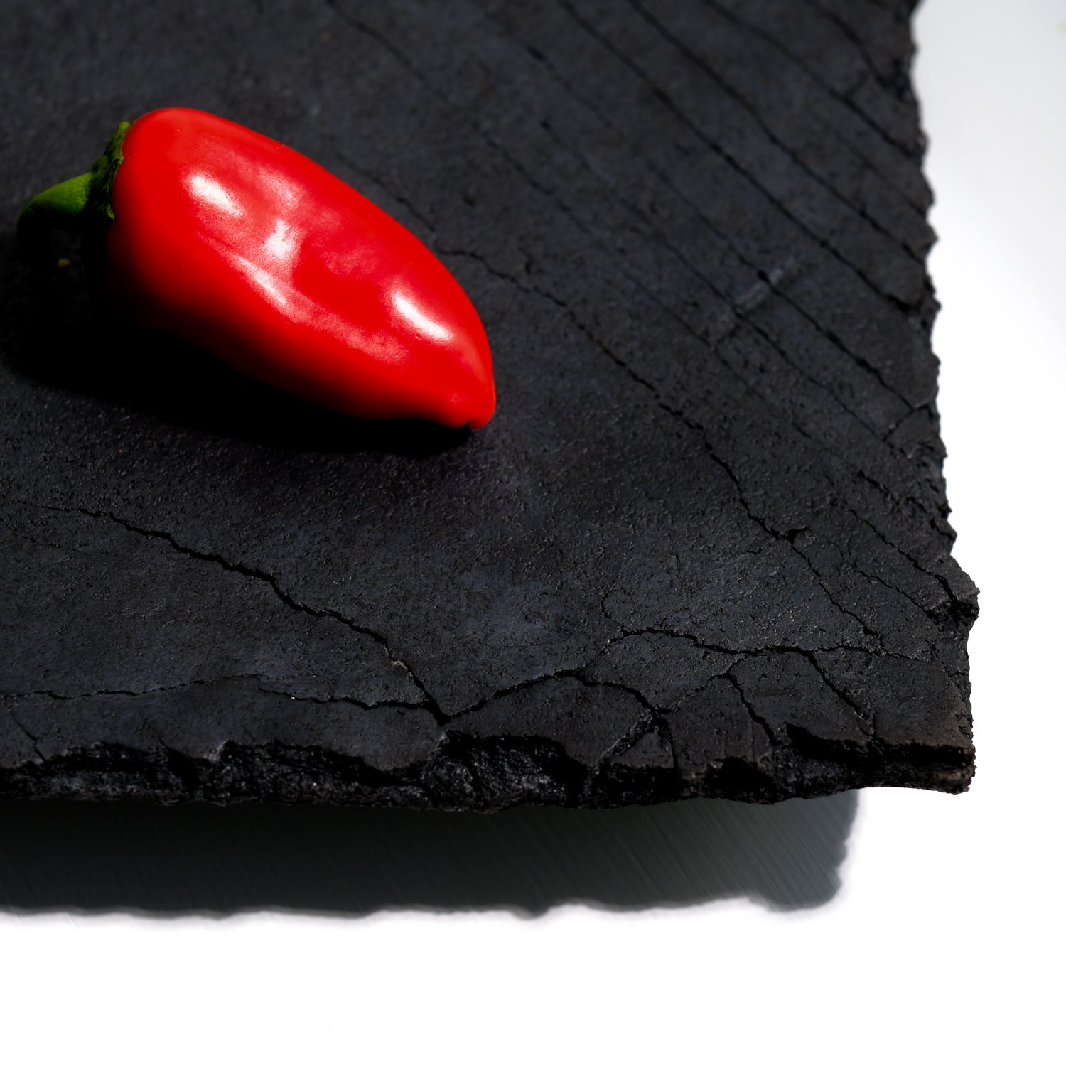 Über das Objekt: Gundula Sommerers schwarze Raku Schalen sind alles andere als gewöhnlich. Die in Aufbautechnik handgefertigten Objekte sind Unikate und jede Schale dieser Kleinstserie unterscheidet sich entweder in Form, Größe oder Oberflächenstruktur. Durch den Einsatz des Raku-Verfahrens beim Brennen der Objekte entsteht Kohlenstoff, der in die Poren der Schale eindringt und die Stücke dauerhaft tiefschwarz färbt. Dieses Schwarz in Kombination mit den Rissen in der Oberfläche der Schale, führt zu einer einzigartigen Individualisierung der Oberflächenstruktur. Sowohl optisch als auch haptisch. Das seidenmatte Tiefschwarz der Schalen harmoniert sowohl mit kräftigen, aber auch reduzierten Farben und bietet darin abgelegten Dingen eine grandiose Bühne. Diese Raku Schale ist mit Antikwachs poliert. Dadurch wird die Oberfläche unempfindlicher und leicht wasserabweisend. Trockene Lebensmittel könnten auf der Schale präsentiert werden, obwohl die Schale sich besser für Schlüssel oder Dinge eignet, die einem lieb und teuer sind. Die Schale hat eine Größe von ca. 20 cm x 20 cm und ist ca. 760 gr schwer. Sie ist Teil einer Kleinstserie und auch in anderen Größen und Formen erhältlich.