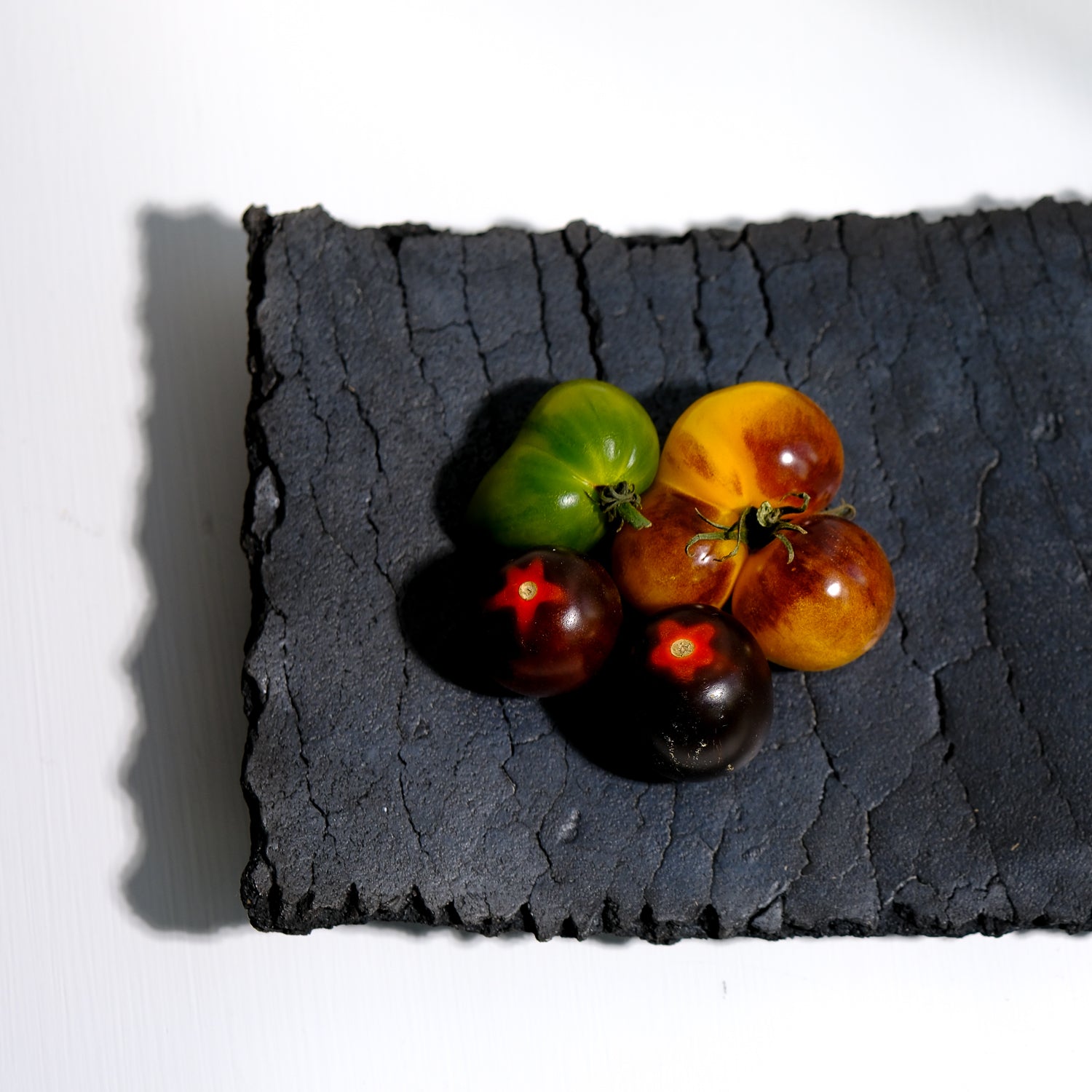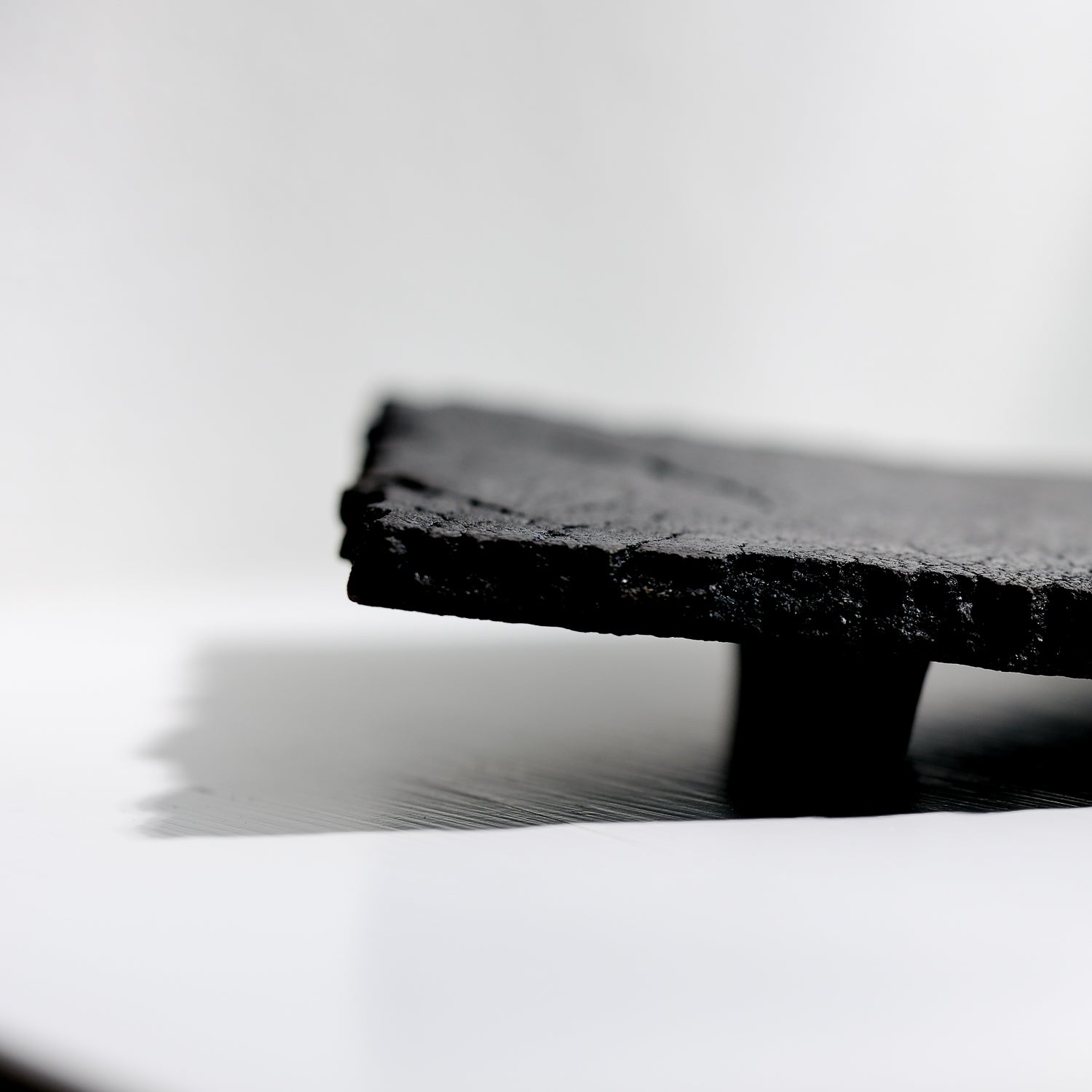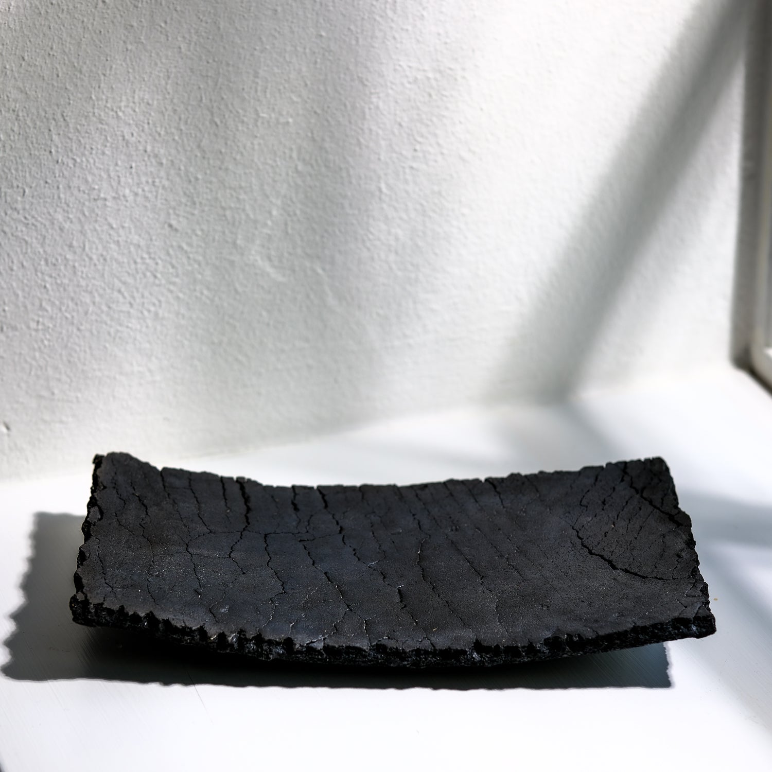 Über das Objekt: Gundula Sommerers schwarze Raku Schalen sind alles andere als gewöhnlich. Die in Aufbautechnik handgefertigten Objekte sind Unikate und jede Schale dieser Kleinstserie unterscheidet sich entweder in Form, Größe oder Oberflächenstruktur. Durch den Einsatz des Raku-Verfahrens beim Brennen der Objekte entsteht Kohlenstoff, der in die Poren der Schale eindringt und die Stücke dauerhaft tiefschwarz färbt. Dieses Schwarz in Kombination mit den Rissen in der Oberfläche der Schale, führt zu einer einzigartigen Individualisierung der Oberflächenstruktur. Sowohl optisch als auch haptisch. Das seidenmatte Tiefschwarz der Schalen harmoniert sowohl mit kräftigen, aber auch reduzierten Farben und bietet darin abgelegten Dingen eine grandiose Bühne. Diese Raku Schale ist mit Antikwachs poliert. Dadurch wird die Oberfläche unempfindlicher und leicht wasserabweisend. Trockene Lebensmittel könnten auf der Schale präsentiert werden, obwohl die Schale sich besser für Schlüssel oder Dinge eignet, die einem lieb und teuer sind. Die Schale hat eine Größe von ca. 17 cm x 29 cm und ist ca. 1020 gr schwer. Sie ist Teil einer Kleinstserie und auch in anderen Größen und Formen erhältlich.