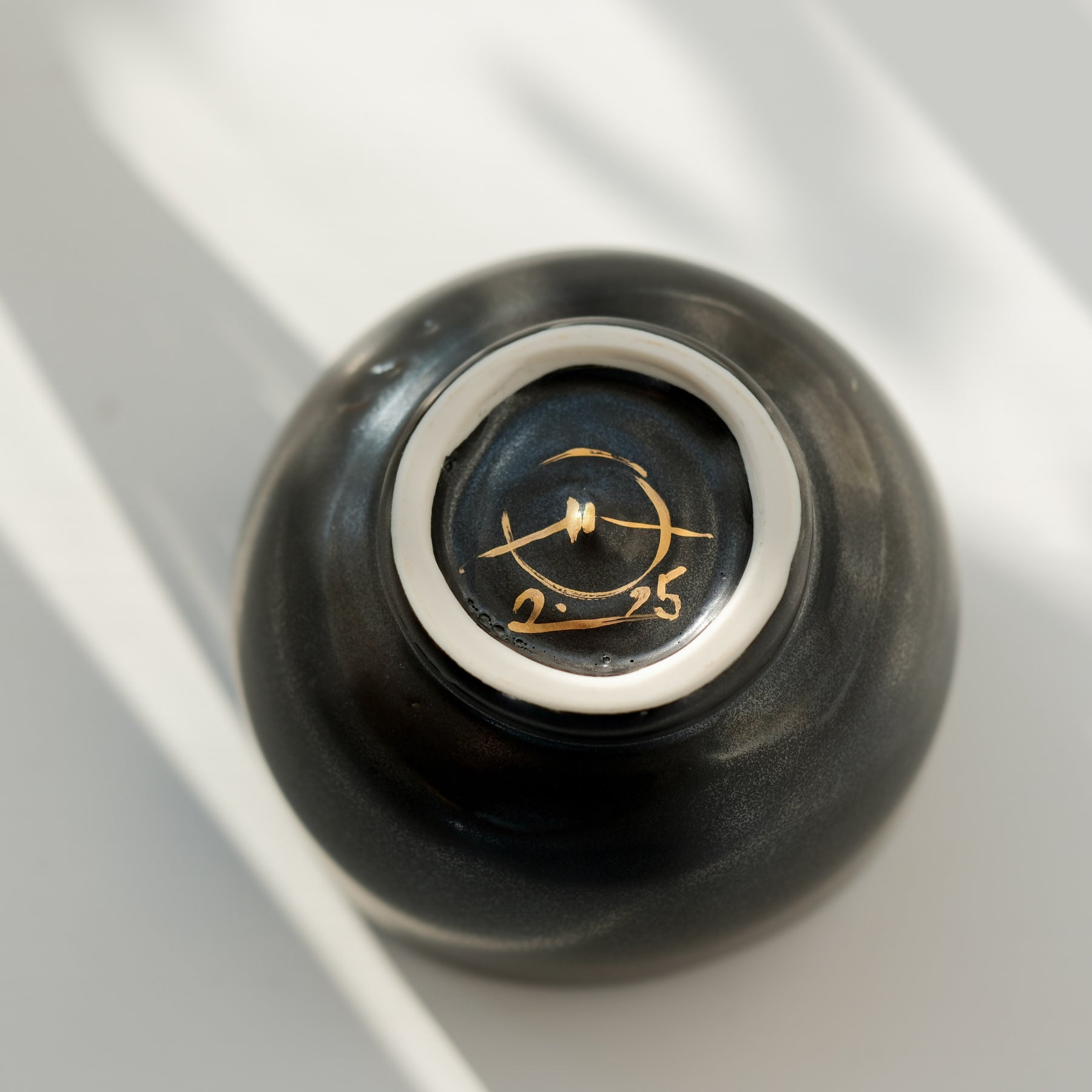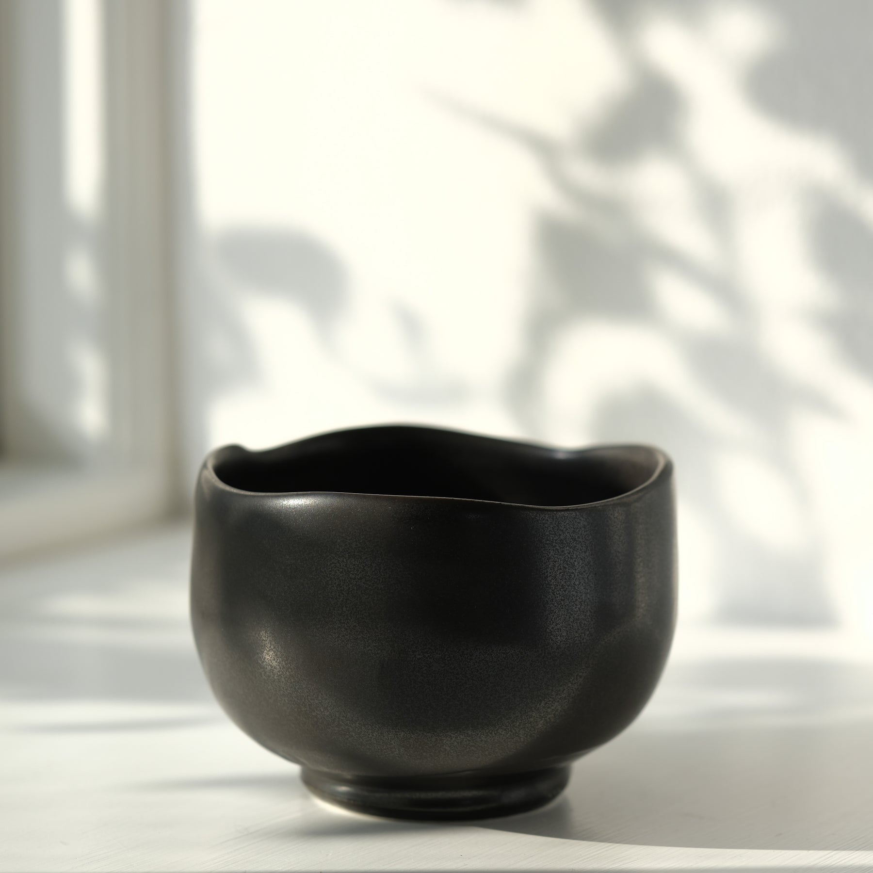 Über das Objekt: Die schwarz metallisch schimmernde Matcha Schale aus Porzellan liegt mit einem Durchmesser von 10,5 cm und einer Höhe von 8 cm angenehm in der Hand. Das hochwertige Porzellan besticht durch seine glatte Oberfläche und seine elegante Ausstrahlung, wodurch es sich ideal für die Zubereitung und den Genuss von Matcha Tee eignet. Oberfläche und Rand zeigen feine, von der Künstlerin bewusst gesetzte Unregelmäßigkeiten, die sanfte Schattierungen erzeugen und dem Chawan eine lebendige, persönliche Note verleihen. Überzeuge dich selbst von der Einzigartigkeit dieses außergewöhnlichen Stücks.