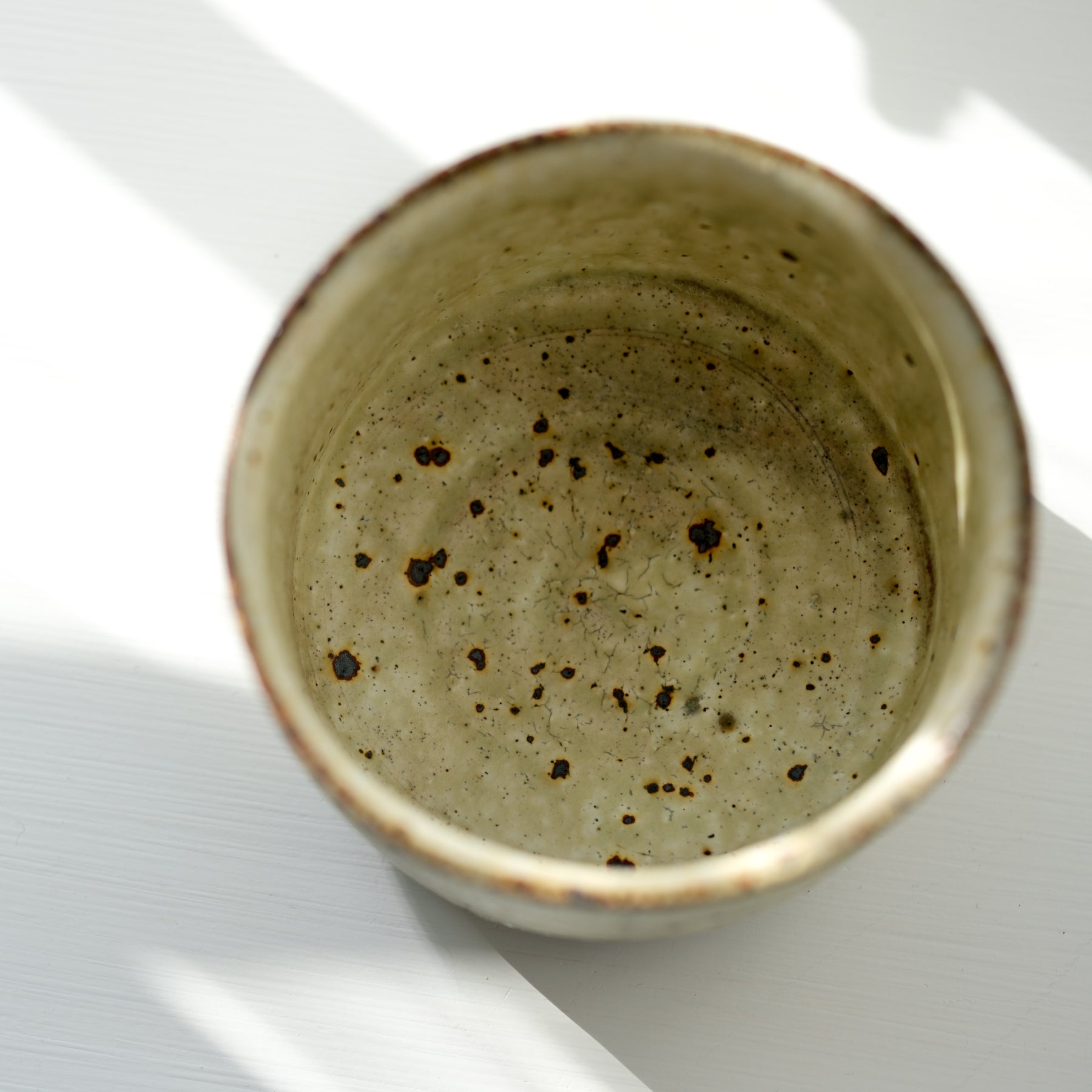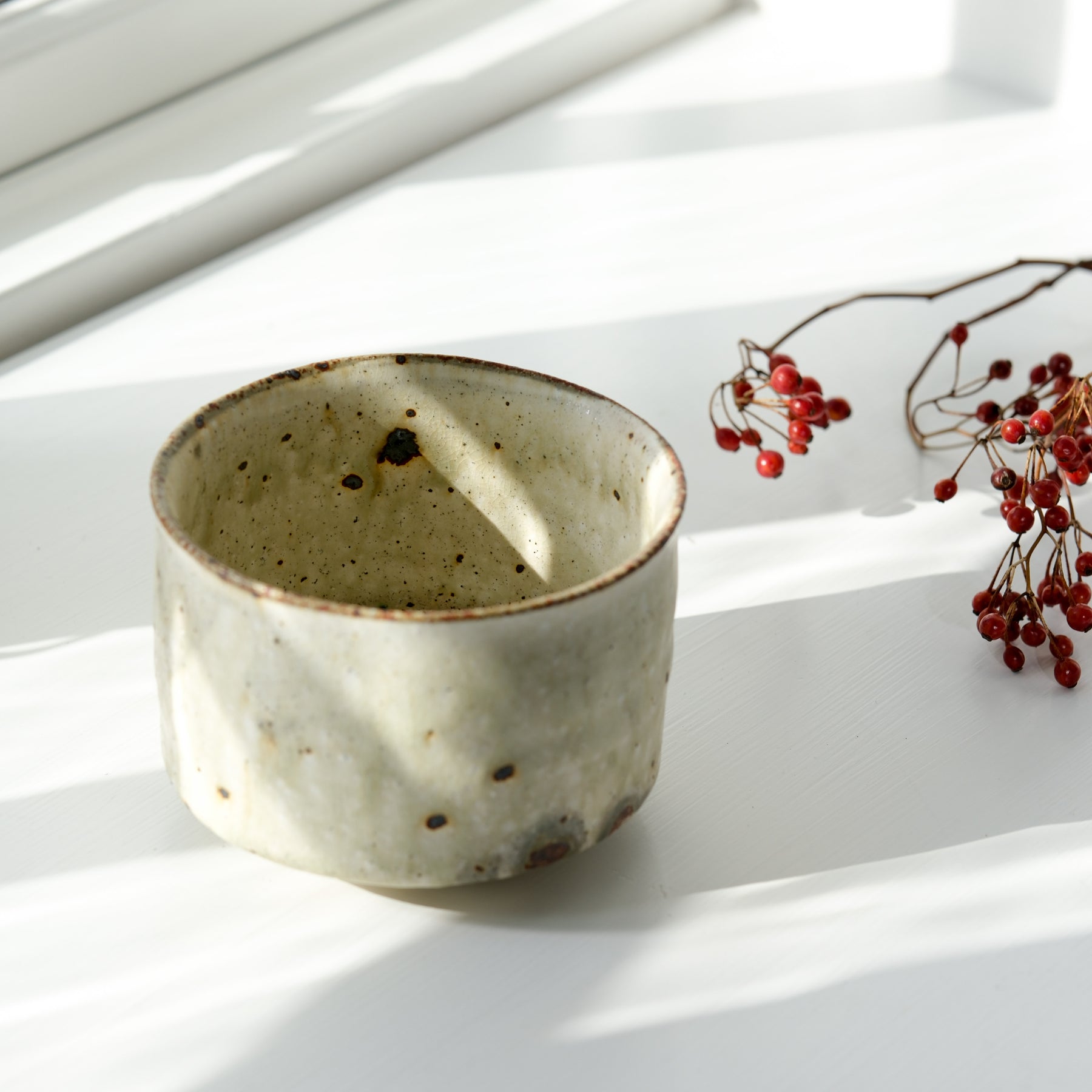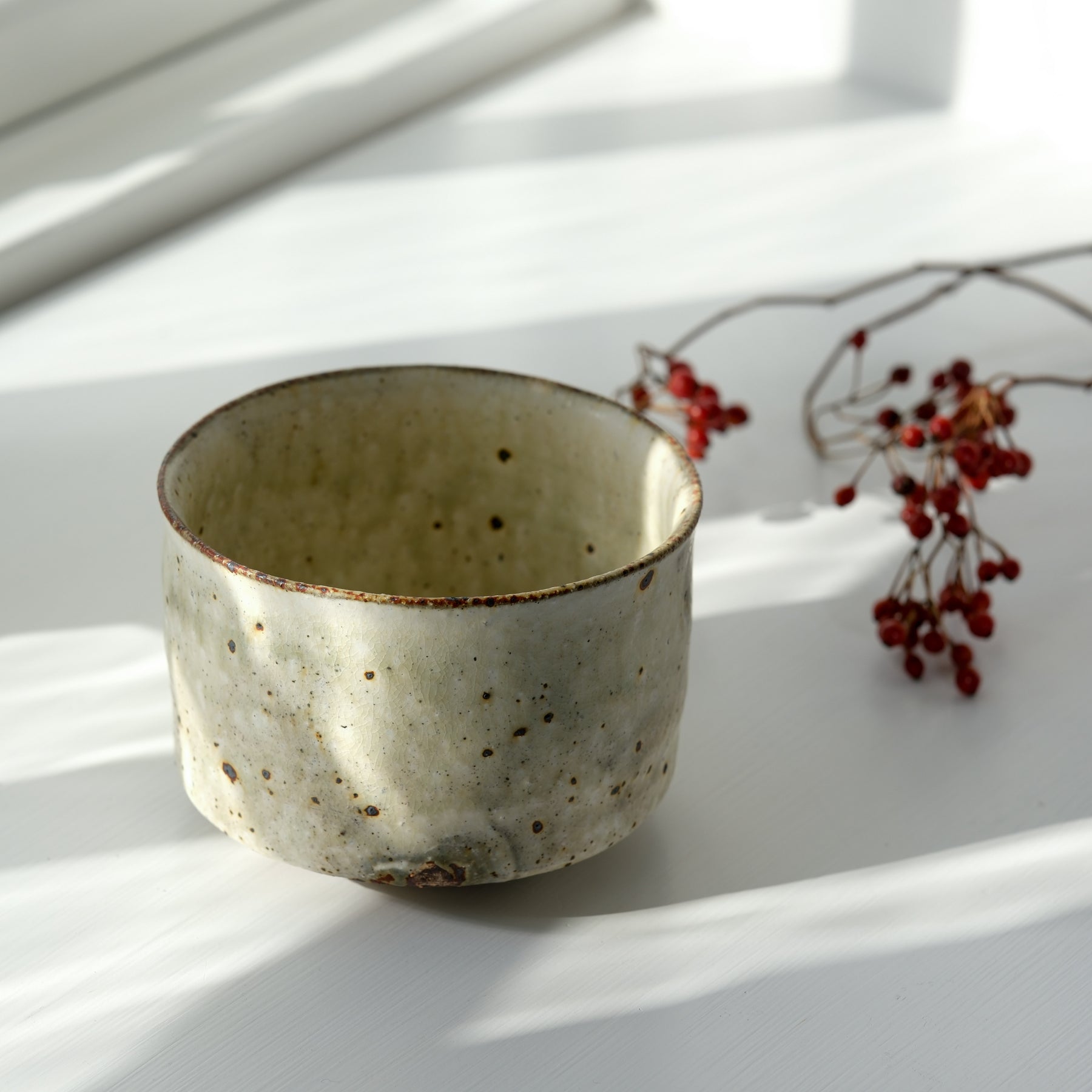Über das Objekt: Marco Minettis Matcha Schale hat einen Durchmesser von ca. 12 cm und ist ca. 8 cm hoch. Sie ist aus wildem Ton der Sierra Nevada gedreht und mit einer Glasur aus Kaolin-Schlicker, Mandelasche und Feldspat überzogen. Die Schale hat schon heute eine wunderschöne Verfärbung und Patina, die sich im Laufe der Nutzung noch weiter entwickeln wird. Die Schale ist lebensmittelecht und enthält kein Blei oder andere Schwermetalle. Die Schale ist nicht Mikrowellen-Ofen-geeignet und sollte mit der Hand abgewaschen werden.