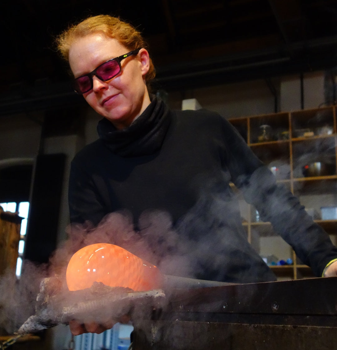 Barbara Ebner von Eschenbach's glass products are made in the glassworks of the museum village of Glashütte/Baruth, approx. 60 km south of Berlin, where she regularly rents space for her production.