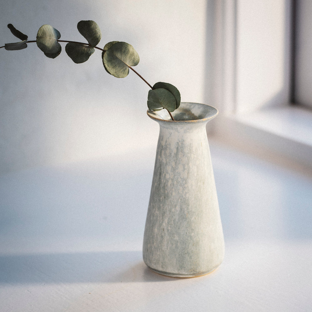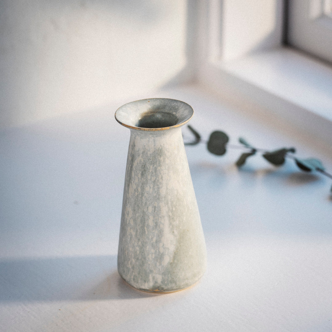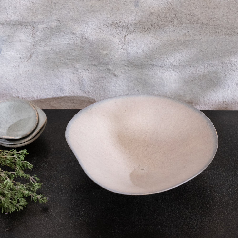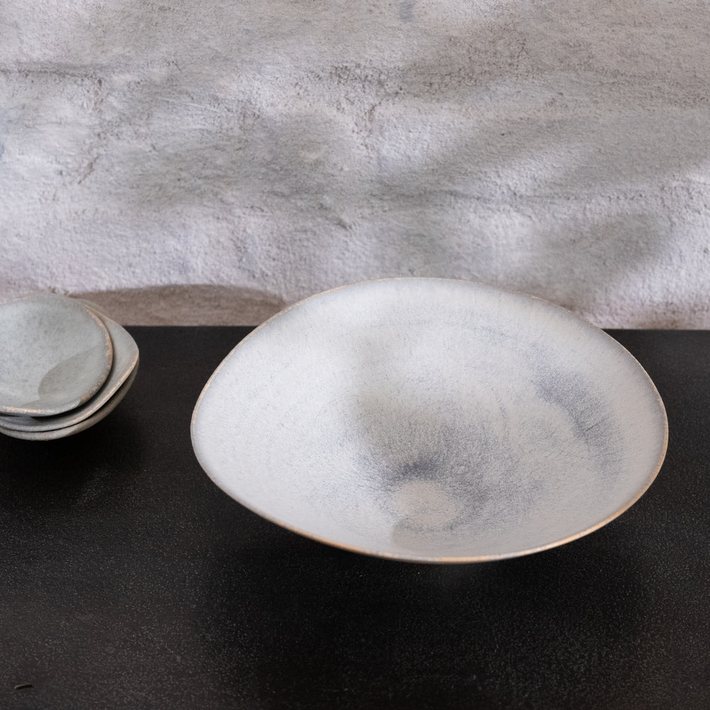 Bisui Ishikawa dreht ihre zarten, leichten Schalen auf der Töpferscheibe und formt die Ränder nach Belieben. Diese Formgebung, die laut Bisui Stimmungs- und Tagesformabhängig ist, erzeugt Kurven in der Schale, die zu der Schale passt und die die Schalen einmalig machen. Bisui dreht ihre Vasen auf der Töpferscheibe, aber die Vasen, deren Form nicht die eines perfekten Kreises ist, werden von Hand gefertigt. Bisui bezeichnet die Zeit, in der sie nicht an der Töpferscheibe steht, als Freizeit. Handgefertigte Vasen fertigt sie also in ihrer Freizeit.
