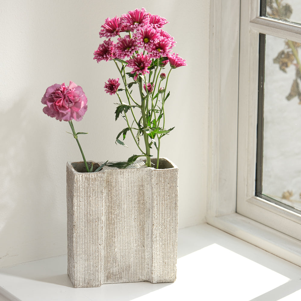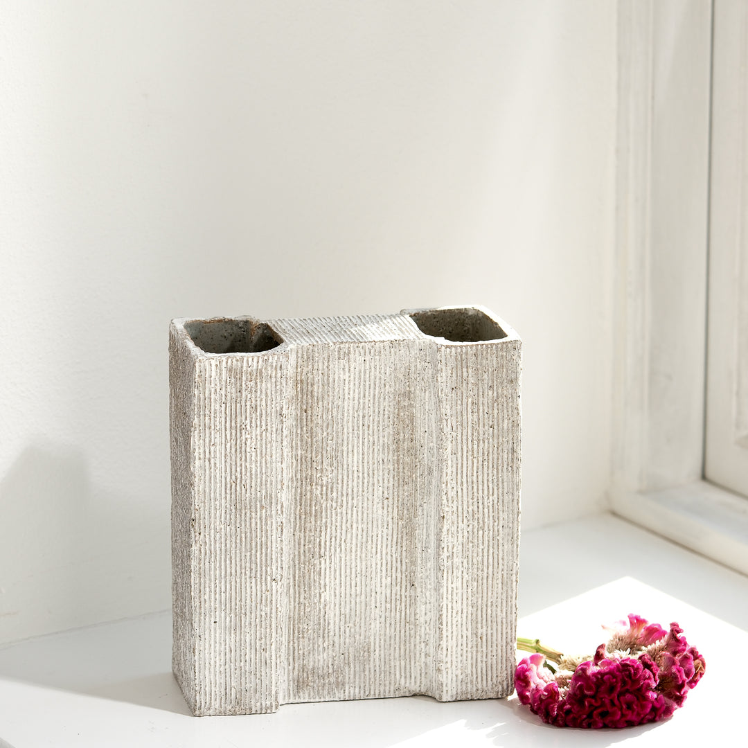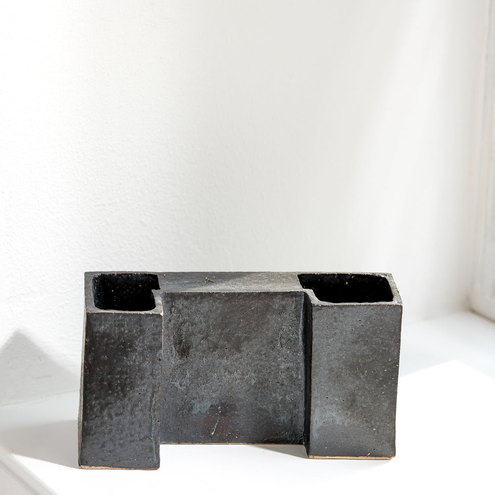 Christine über ihre Arbeiten: "Im Fokus steht die Auseinandersetzung mit einfachen geometrischen Formen: der Grundriss gibt die Form vor. Durch das Gliedern der Flächen ergibt sich eine Vielzahl an Möglichkeiten die Gestalt der Gefäße zu variieren. Durch minimale Eingriffe lassen sich die Komposition der Formen immer wieder neu zusammenzusetzen.