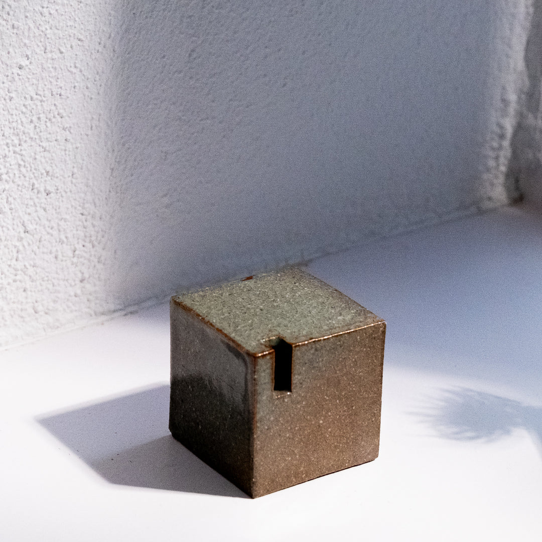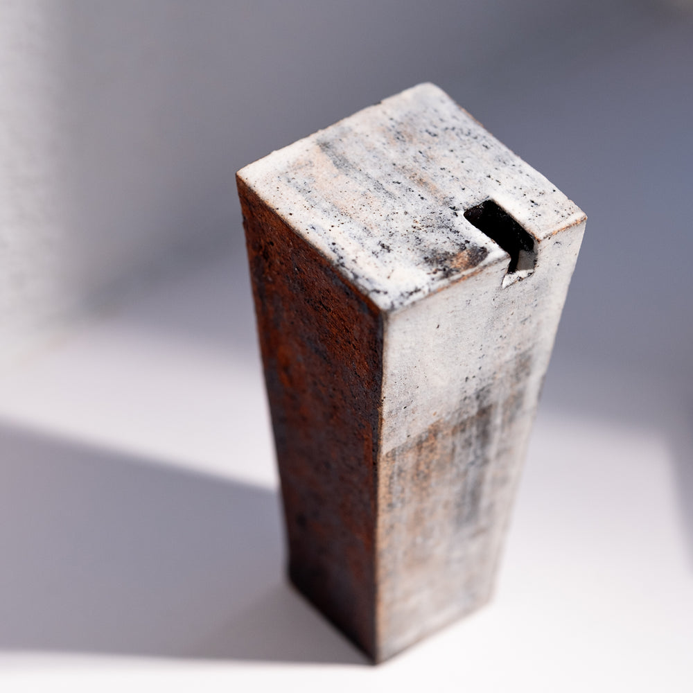 Tomoko Iwata erstellt Dinge nach dem japanischen Konzept „Utsuwa“: schöne Dinge für den täglichen Gebrauch. Ihre Einzelblumenvasenserie „Kusano Utsuwa“ ist nach dem Tatara Verfahren hergestellt. Tatara ist ein Verfahren zum Formen von Tonplatten durch Biegen oder Zusammenfügen auf einem Brett oder einer ebenen Fläche. Tomoko nutzt Tatara-Zukuri um ihre quadratischen, rechteckigen oder trapezförmigen Vasen aus flachen Tonplatten herzustellen.